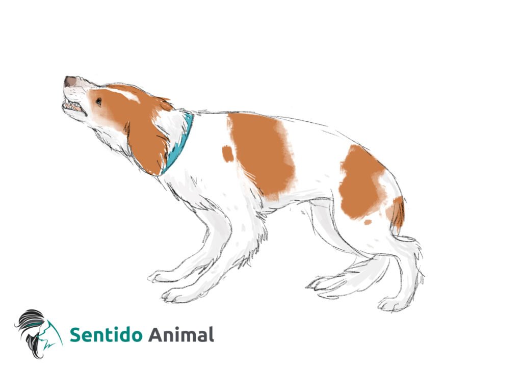 El perro ha entrado en una situación en la que necesita protegerse. Su inseguridad le obliga a proteger sus zonas más vulnerables pero debe mostrar que está dispuesto a atacar si la situación continúa o va a mayores.
